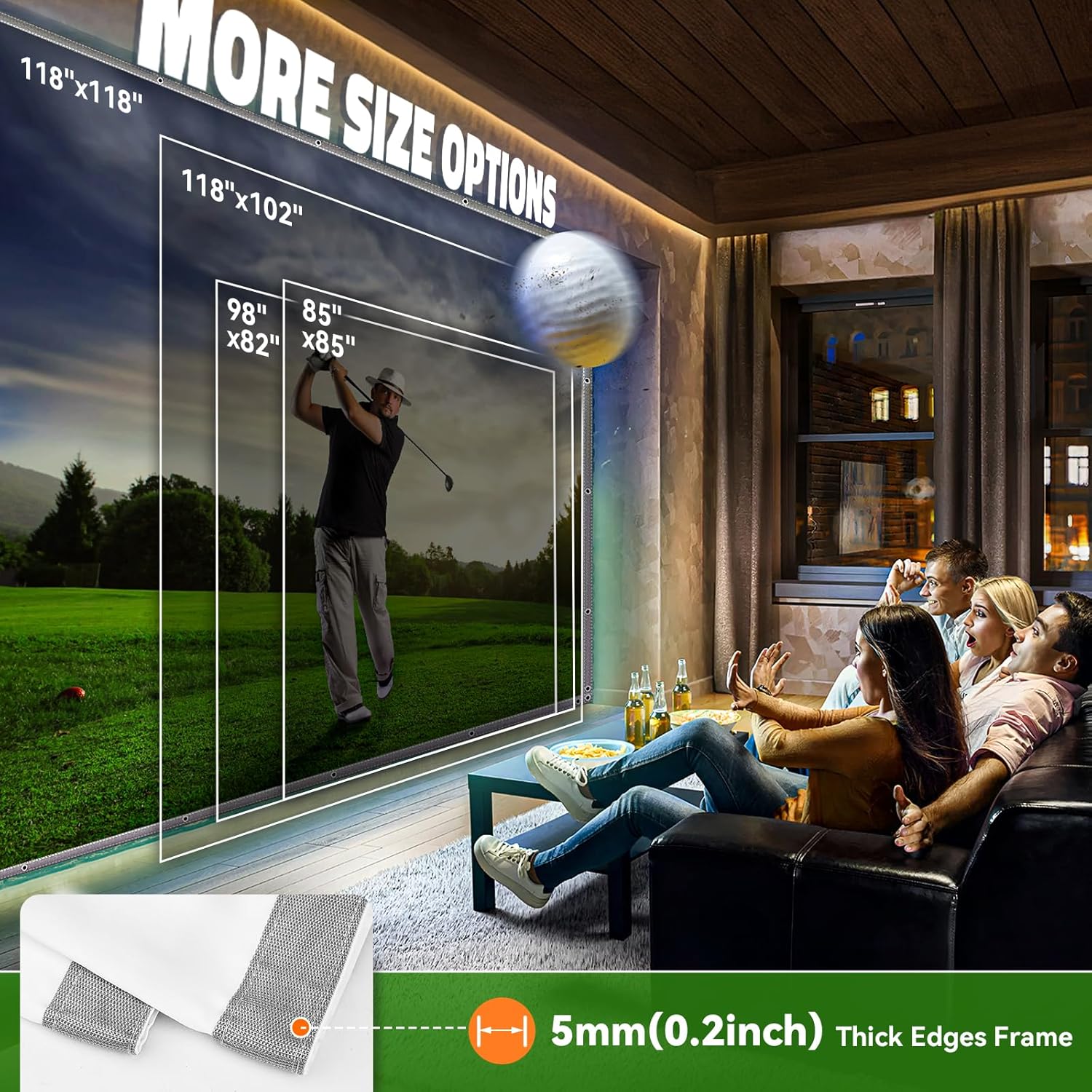 Golf Simulator Impact Screen: Ultra Clear Golf Impact Screen for Home/Indoor/Garage Swing Training – Thickened Golf Practice Net with Border Velcro and 48pcs Grommet Holes, 5 Size Options